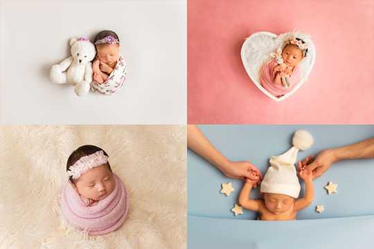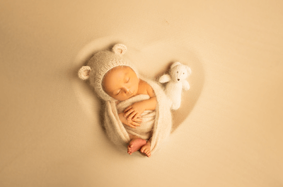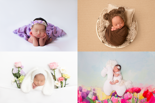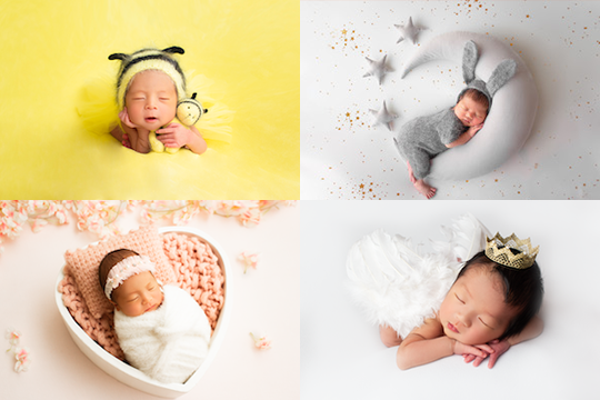 A.ニューボーン(新生児)フォトは基本的に生後3週間以内にお撮りするものです。特に、生後5日〜14日は赤ちゃんは、身体の柔軟性や可動域、眠りやすさの関係があり、ママのお腹の中にいた記憶を再現しやすくなっております。